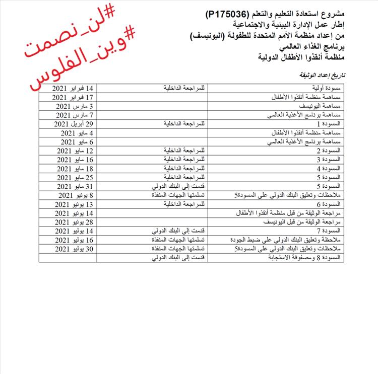 وثائق مشروع استعادة التعليم عبر منظمات اليونيسف وبرنامج الغذاء العالمي ومنظمة أنقذوا الطفولة (الوثائق ملفين بعدد صفحات اجمالي 195 صفحة)