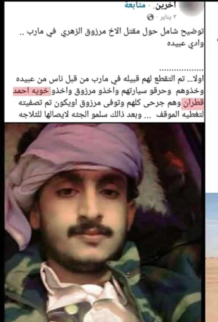 ٣. قضية ضبط احمد قطران في مارب ومقتل رفيقه قد نشرت في الاعلام الالكتروني ومواقع التواصل الاجتماعي من قبل عشرة أشعر كذلك ، وقد أرفقت لكم بعضا من الصور لمنشورات نشرت حول القضية في شهر يناير من هذا العام .