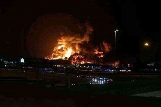 واندلعت النيران في الخزانين، إثر استهدافهما بعمل عدائي شنته مليشيا الحوثي الإرهابية مساء اليوم الجمعة.