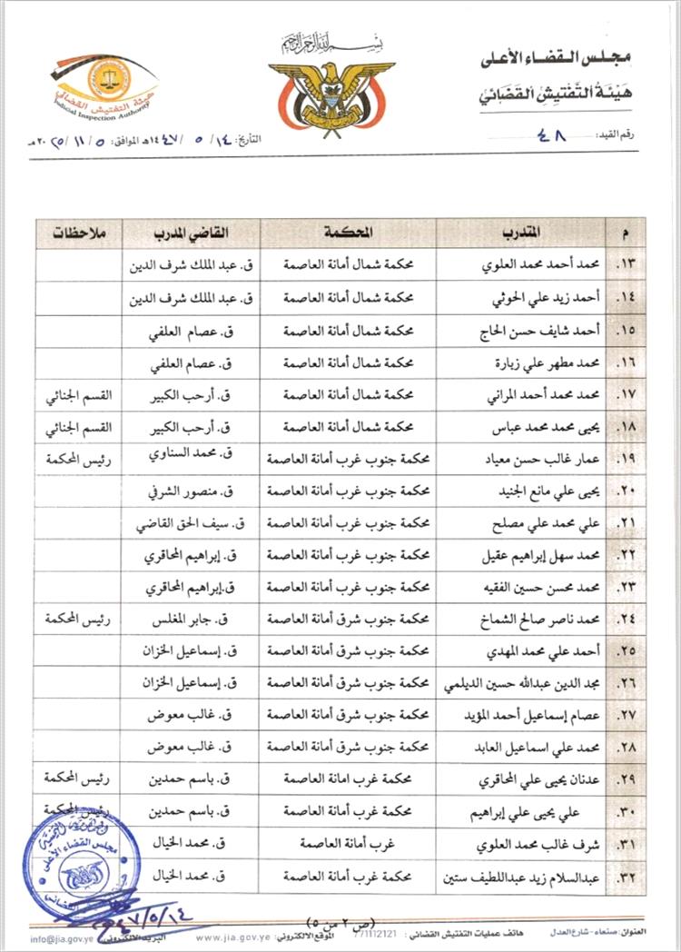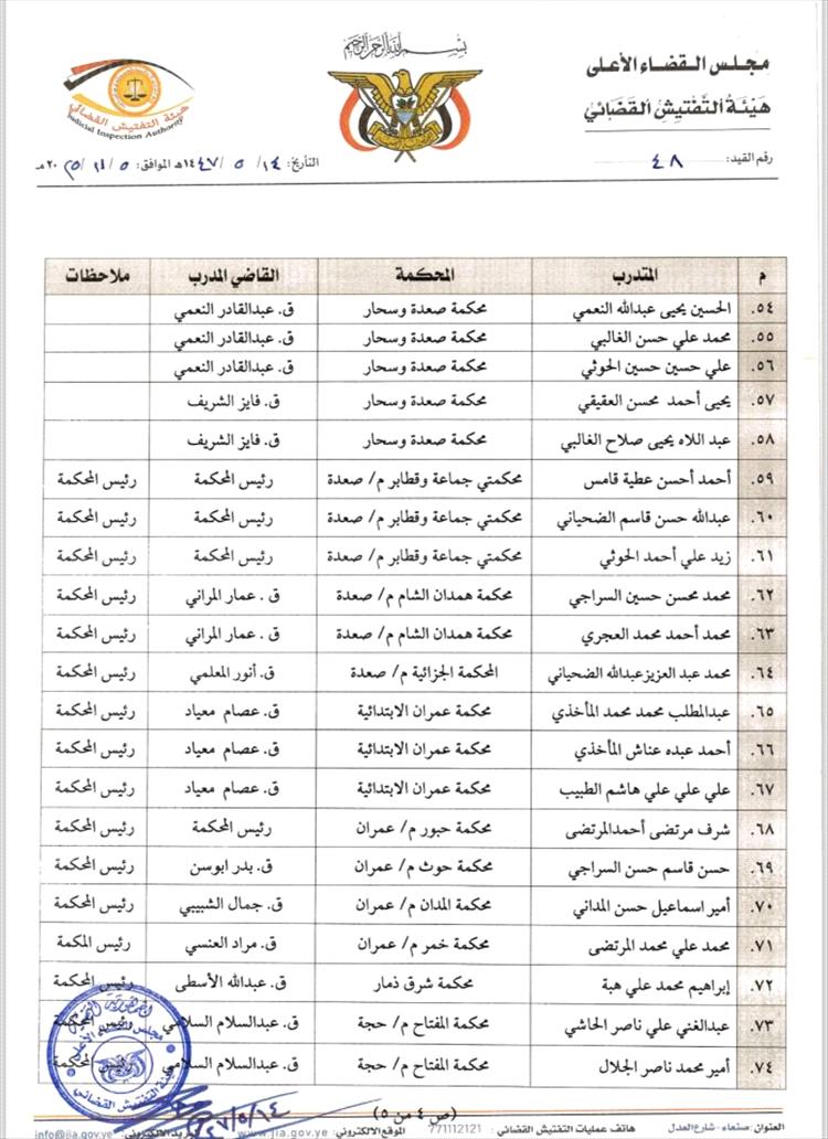 حذّر المركز الأمريكي للعدالة (ACJ) من خطوة جديدة تهدد ما تبقى من استقلال القضاء في اليمن، بعد إصدار هيئة التفتيش القضائي التابعة لمجلس القضاء الأعلى الخاضع لمليشيا الحوثي في العاصمة المحتلة صنعاء قراراً يقضي بتوزيع 83 من خريجي دورة تأهيلية لعلماء الشريعة على عدد من المحاكم تمهيداً لتعيينهم في السلك القضائي.