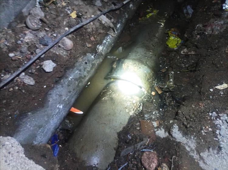 وشملت التخريب سد منافذ وممرات التصريف داخل أحد المناهل الرئيسية عبر وضع أكياس وجواني داخل الشبكة، في محاولة واضحة للتسبب بطفح المجاري وإثارة الفوضى.